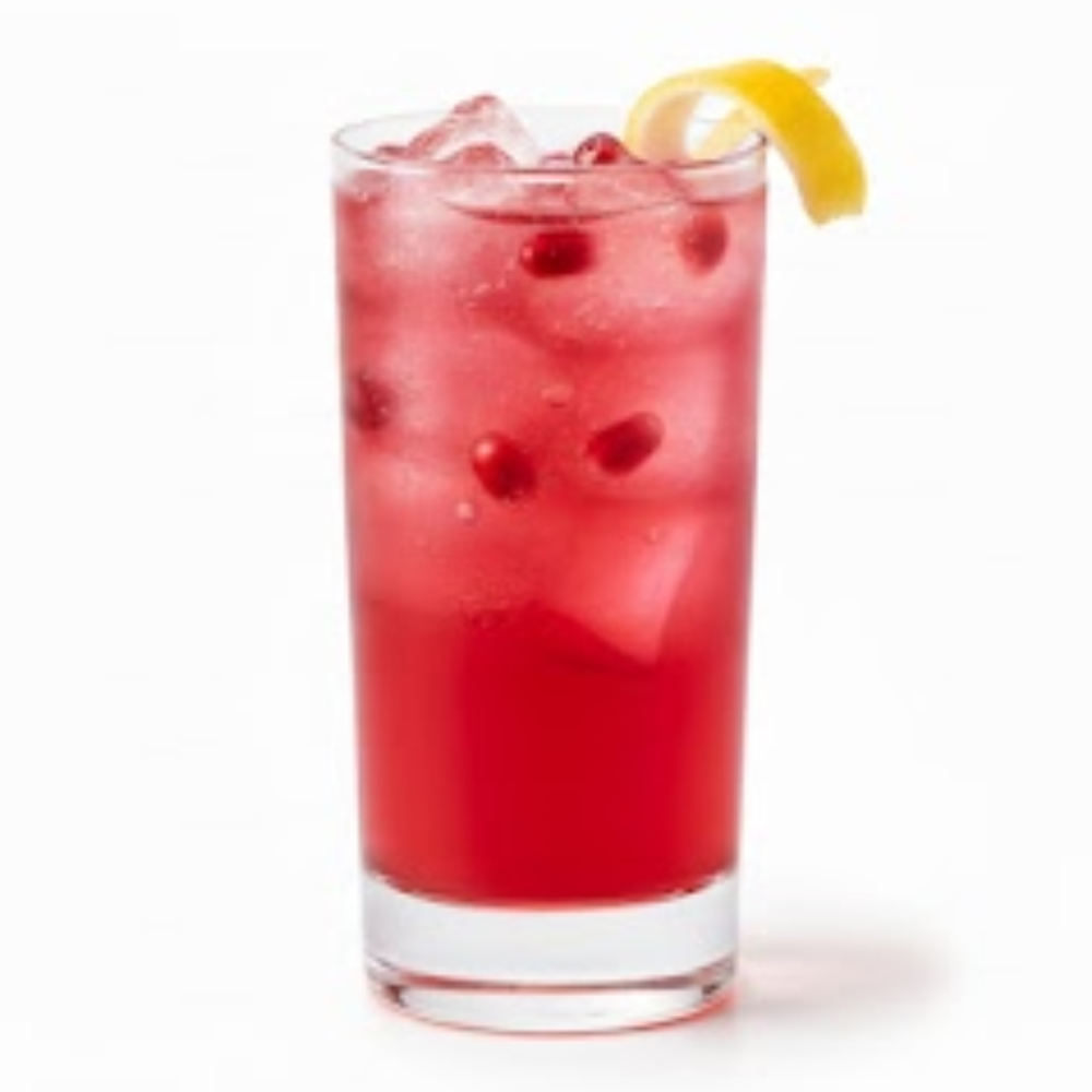 Pomegranate syrup, lemon twist, and fizzy soda, Light, tangy.
